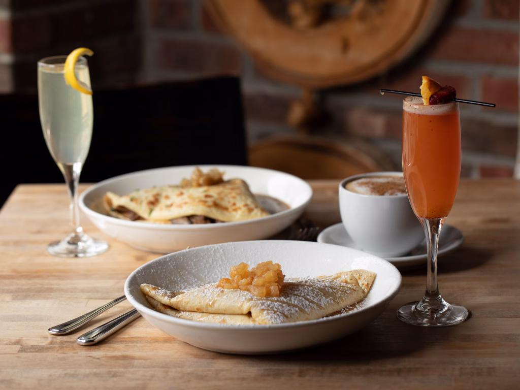 Cachette Bistro + Crêperie, Tapas’ attached sister restaurant, channels the hidden charm of a Parisian café. Its rustic-yet-upscale ambiance pairs perfectly with its delightful selection of sweet and savory crêpes, French-inspired small plates, espresso drinks, and a full bar. The menu flows effortlessly from brunch to evening.