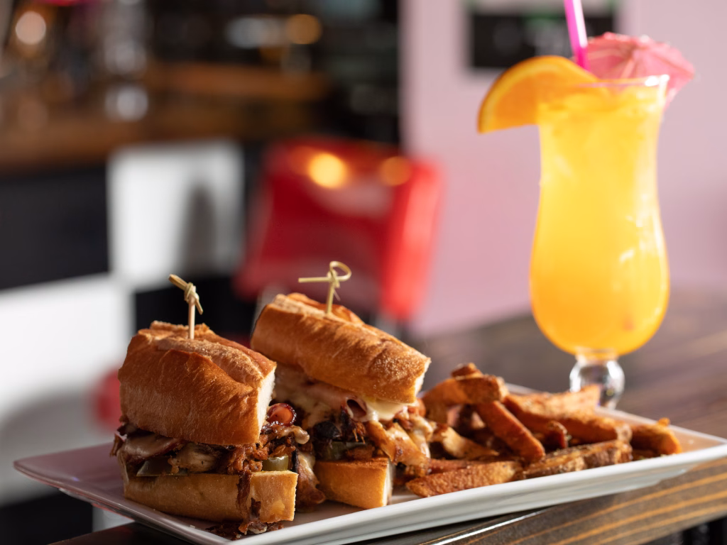 Retro Burger serves comfort food with a nostalgic twist. The vibe is fun and funky, the burgers are creative, and the milkshakes—sometimes boozy—are downright decadent. Stop in for a casual bite and stay for a neon-lit game night complete with pool, claw machines, and a jukebox. Don’t miss the jumbo wings and Cubanos, served hot and full of flavor.