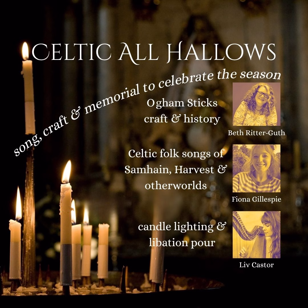 Welcome the Dark Half of the Year and celebrate the Hallowtide season in song, craft and memorial with Hearthsong Folk Arts, a Bethlehem-based nonprofit exploring global folk traditional arts and customs through performances, workshops and community gatherings. Join for an evening’s exploration of the history and living traditions of Samhain, All Souls and Halloween in the Celtic spirit. Learn a few simple and powerful folk songs of the afterlife and other worlds; engrave a prepared stick with a wood burning pen of your chosen “tree letter” in an introduction to Ireland’s archaic and mystical alphabet, the Ogham script; participate in a small candlelit ritual of pouring out cider in remembrance accompanied by Celtic harp. We gather in the Loft Theater of Bethlehem’s Ice House to recreate and forge old and new folk practices that help us connect to ourselves, our pasts and the world around us.