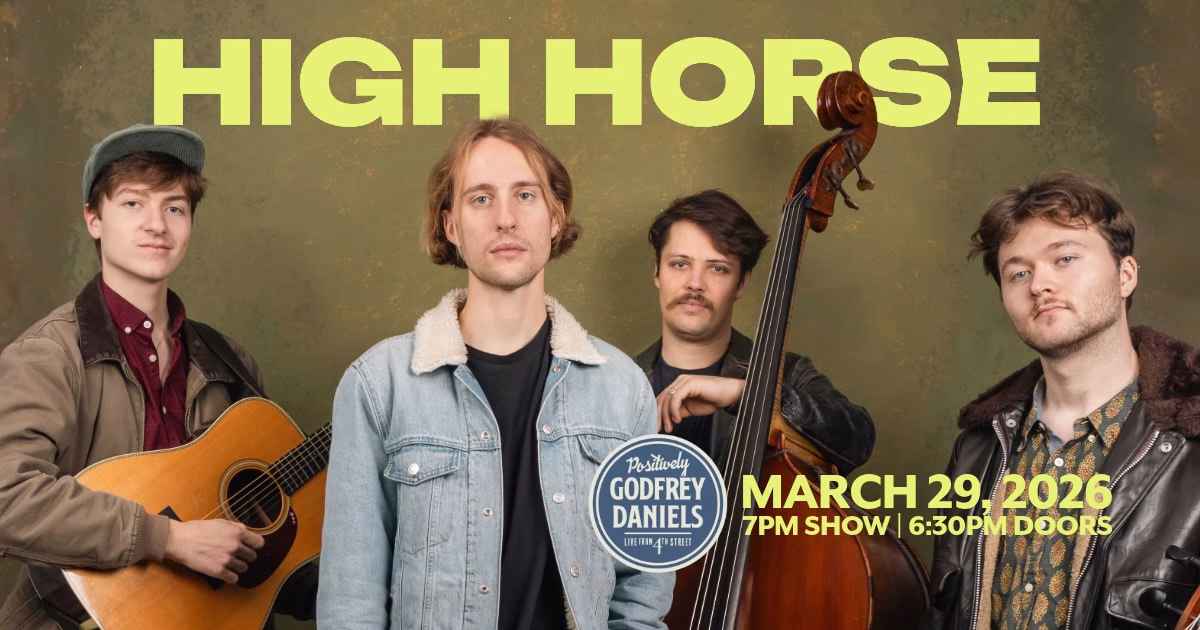 High Horse brings their progressive acoustic energy to Godfrey Daniels for a show that highlights their inventive approach to Bluegrass, Old Time, and Folk traditions. With fiddler Carson McHaney, cellist Karl Henry, guitarist G Rockwell, and bassist Noah Harrington, the Boston-based quartet draws on their roots at Berklee College of Music and New England Conservatory to deliver crisp vocals, tight arrangements, and dynamic original compositions. Their debut album, produced by Jacob Jolliff and engineered by Dave Sinko, showcases the band’s virtuosity and adventurous spirit—qualities that shine in their live performances. Settle into the warmth of our Live Music Listening Room and enjoy an afternoon of intimate, high-caliber music making.