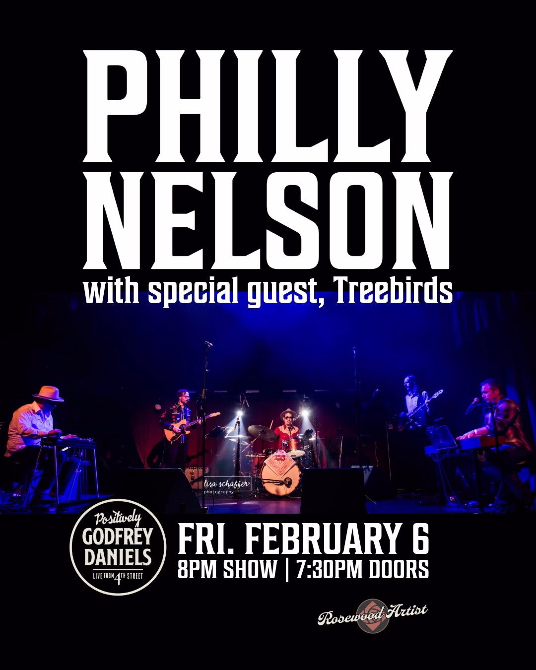 Philly Nelson: Music for the Saloon Led by, Daniel S. Bower Philly Nelson is a collective of musicians who share a common love for Willie, Merle, Hank, Prine, and many more of the songwriting greats of our time. Music that goes great with beer, darts, and laughs. Treebirds: Music for the Parlor Treebirds is a folk trio designed for house concerts featuring original songs by Daniel S. Bower. Philly Nelson arrives at Godfrey Daniels with a deep affection for the music of Willie Nelson and the songwriting greats who shaped American roots music. Led by Daniel S. Bower, this collective approaches Willie’s catalog not as imitation, but as an open exploration—honoring the songs while allowing space for interpretation, spontaneity, and shared discovery. The result is music that feels familiar yet alive in the moment, shaped by musicians who make their living on stage and thrive in conversation with one another.