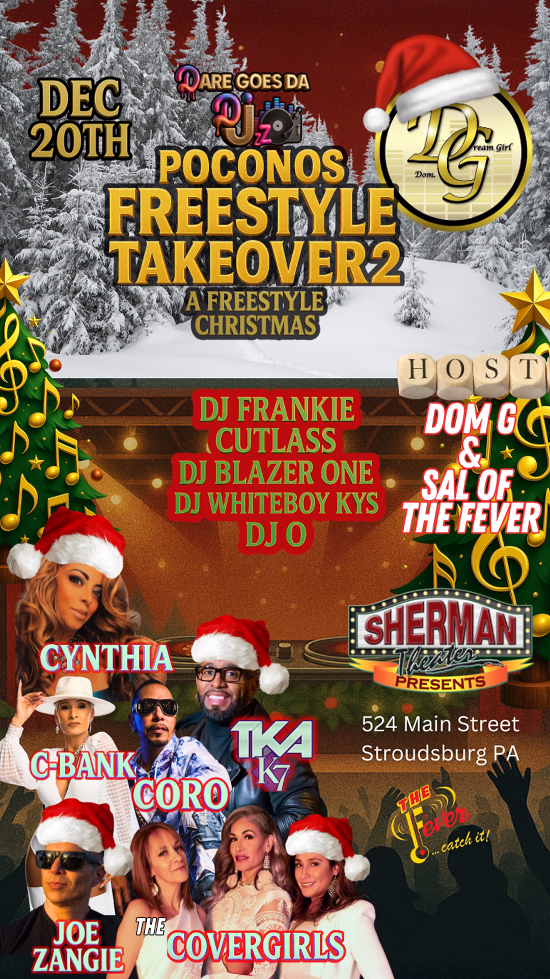 $39 to $118.37 (fees included) Presented by DreamGirl Cynthia and Domg Daregoesdaneighborhood, this night is set to be an unforgettable experience with electrifying performances by: Dreamgirl Cynthia Coro TK4 K7 Joe Zangie C-Bank The Covergirls Get ready to dance and party the night away with the ultimate freestyle legends.