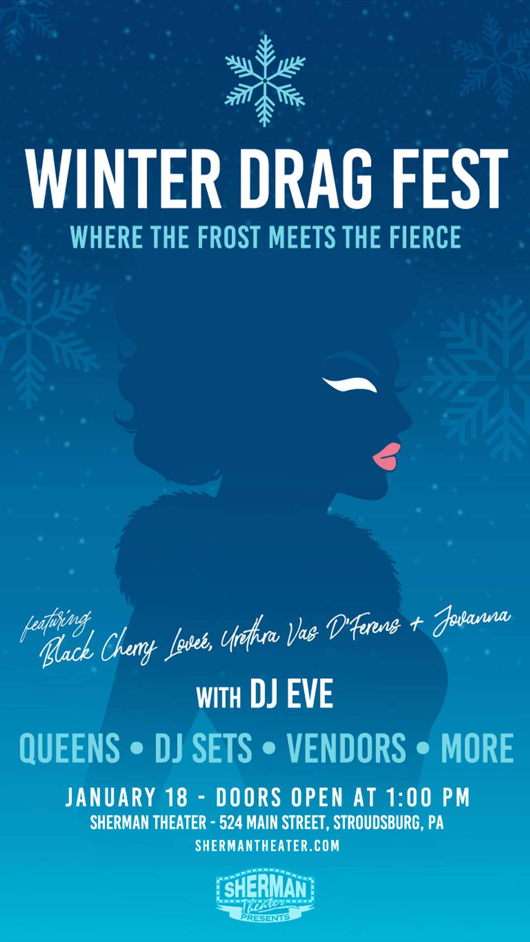 $20 to $29.75 (fees included) *For mature audiences only Get ready to heat up the cold season at Winter Drag Fest: Where the Frost Meets The Fierce on January 18 at the Sherman Theater! Hosted by Black Cherry Loveé, Urethra Vas D’Ferens, and Jovanna, this all-day celebration will feature dazzling drag performances, high-energy DJ sets from DJ EVE, unique vendors, and more fabulous surprises to be announced. Come slay the winter blues with a day full of glam, music, and fierce energy!